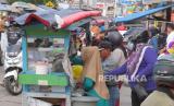 Masyarakat memadati kawasan Pasar Panorama, Kecamatan Lembang, Kabupaten Bandung Barat, untuk berburu kuliner saat Ramadhan pertama, Jumat (24/4). Pemberlakuan Pembatasan Sosial Berskala Besar (PSBB) tidak menyurutkan masyarakat untuk berburu takjil, begitu juga pedagang berharap rezeki saat Ramadhan di tengah pandemi Covid-19 (FOTO : Edi Yusuf/Republika)