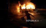 REPUBLIKA.CO.ID, MAKASSAR -- Aksi menolak UU Cipta Kerja tersebut berakhir ricuh Kamis (22/10). Massa bentrok dengan aparat dan sejumlah kendaraan dibakar termasuk kantor Partai Nasdem dirusak.