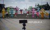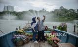 Warga berswafoto di kawasan Senayan Park, Jakarta, Selasa (15/12). Tempat yang dulu dikenal dengan nama Taman Ria Senayan sempat menjadi lokasi favorit pada era 70 dan 80-an kini berganti konsep menjadi Senayan Park (SPARK) dan menjadi alternatif destinasi wisata di Jakarta yang instagramable dengan dilengkapi spot foto yang beragam. Republika/Thoudy Badai (FOTO : Republika/Thoudy Badai)