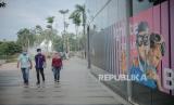 Warga beraktivitas di kawasan Senayan Park, Jakarta, Selasa (15/12). Tempat yang dulu dikenal dengan nama Taman Ria Senayan sempat menjadi lokasi favorit pada era 70 dan 80-an kini berganti konsep menjadi Senayan Park (SPARK) dan menjadi alternatif destinasi wisata di Jakarta yang instagramable dengan dilengkapi spot foto yang beragam.  (FOTO : Republika/Thoudy Badai)