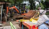 REPUBLIKA.CO.ID, PALEMBANG -- Petugas dibantu alat berat membongkar bangunan liar yang berada di Jalan Mayor Zen Palembang, Sumatera Selatan, Senin (1/2/2021). Puluhan bangunan semi permanen dan permanen di kawasan itu ditertibkan petugas karena tidak memiliki izin.