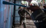 Petugas Satpol PP Kota Palembang membongkar bangunan liar yang berada di Jalan Mayor Zen Palembang, Sumatera Selatan, Senin (1/2). (FOTO : Antara/Nova Wahyudi)