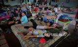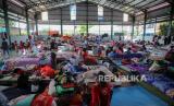 Warga terdampak banjir mengungsi di gedung olahraga, Total Persada, Periuk, Kota Tangerang, Banten. Banjir setinggi 2,5 meter di kawasan tersebut mengakibatkan sebanyak 800 kepala keluarga terpaksa mengungsi di posko pengungsian.