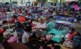Warga terdampak banjir mengungsi di gedung olahraga, Total Persada, Periuk, Kota Tangerang, Banten, Senin (22/2/2021). Banjir setinggi 2,5 meter di kawasan tersebut mengakibatkan sebanyak 800 kepala keluarga terpaksa mengungsi di posko pengungsian. (FOTO : ANTARA/Fauzan)