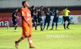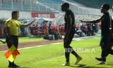 Bek Persib Victor Igbonefo memprotes keputusan hakim garis pada pertandingan lanjutan Piala Menpora 2021 melawan Persiraja di Stadion Maguwoharjo, Sleman, Yogyakarta, Jumat (2/4). Persib berhasil mengalahkan Persiraja 2-1. Dengan hasil ini Persib memuncaki grup D, melaju ke babak selanjutnya bersama Bali United. (FOTO : Wihdan Hidayat / Republika)