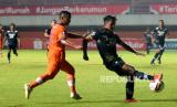 Penyerang Persib Ferdinand Sinaga berebut bola dengan bek Persiraja pada pertandingan lanjutan Piala Menpora 2021 di Stadion Maguwoharjo, Sleman, Yogyakarta, Jumat (2/4). Persib berhasil mengalahkan Persiraja 2-1. Dengan hasil ini Persib memuncaki grup D, melaju ke babak selanjutnya bersama Bali United. (FOTO : Wihdan Hidayat / Republika)