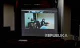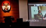 Mantan Menteri Kelautan dan Perikanan Edhy Prabowo menjalani sidang perdana kasus dugaan suap izin ekspor benih bening lobster atau benur yang digelar secara virtual di gedung Merah Putih KPK, Jakarta, Kamis (15/4). (FOTO : Republika/Thoudy Badai)