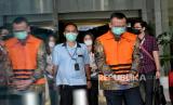 Mantan Menteri Kelautan dan Perikanan Edhy Prabowo berjalan meninggalkan gedung KPK usai menjalani sidang perdana kasus dugaan suap izin ekspor benih bening lobster atau benur yang digelar secara virtual di gedung Merah Putih KPK, Jakarta, Kamis (15/4). (FOTO : Republika/Thoudy Badai)