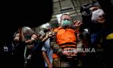Mantan Menteri Kelautan dan Perikanan Edhy Prabowo menaiki mobil tahanan usai menjalani sidang perdana kasus dugaan suap izin ekspor benih bening lobster atau benur yang digelar secara virtual di gedung Merah Putih KPK, Jakarta, Kamis (15/4). (FOTO : Republika/Thoudy Badai)