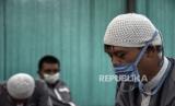 Sejumlah siswa penyandang disabilitas mengikuti kegiatan Pesantren Ramadhan Penyandang Disabilitas di Panti Sosial Rehabilitasi Penyandang Disabilitas Dinsos Jabar, Jalan Jend H Amir Machmud, Kota Cimahi, Kamis (15/4). Pesantren Ramadhan yang diikuti oleh sedikitnya 50 siswa penyandang disabilitas tersebut dalam rangka mengisi waktu luang di bulan Ramadhan dengan memperdalam ilmu agama dengan membaca Alquran, ibadah, dan hafalan doa. Foto: Republika/Abdan Syakura (FOTO : REPUBLIKA/ABDAN SYAKURA)