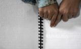 Siswa penyandang disabilitas membaca Alquran braille saat kegiatan Pesantren Ramadhan Penyandang Disabilitas di Panti Sosial Rehabilitasi Penyandang Disabilitas Dinsos Jabar, Jalan Jend H Amir Machmud, Kota Cimahi, Kamis (15/4). Pesantren Ramadhan yang diikuti oleh sedikitnya 50 siswa penyandang disabilitas tersebut dalam rangka mengisi waktu luang di bulan Ramadhan dengan memperdalam ilmu agama dengan membaca Alquran, ibadah, dan hafalan doa. Foto: Republika/Abdan Syakura (FOTO : REPUBLIKA/ABDAN SYAKURA)