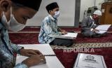 Sejumlah siswa penyandang disabilitas membaca Alquran braille saat kegiatan Pesantren Ramadhan Penyandang Disabilitas di Panti Sosial Rehabilitasi Penyandang Disabilitas Dinsos Jabar, Jalan Jend H Amir Machmud, Kota Cimahi, Kamis (15/4). Pesantren Ramadhan yang diikuti oleh sedikitnya 50 siswa penyandang disabilitas tersebut dalam rangka mengisi waktu luang di bulan Ramadhan dengan memperdalam ilmu agama dengan membaca Alquran, ibadah, dan hafalan doa. Foto: Republika/Abdan Syakura (FOTO : REPUBLIKA/ABDAN SYAKURA)