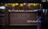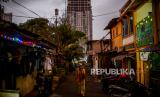 Warga melintas di dekat pemukiman yang dihias bertemakan Ramadhan di Kampung Martakura, Kebon Melati, Jakarta, Kamis (15/4). Kampung Martakura dihias secara swadaya oleh warga dengan ornamen bertemakan Ramadhan untuk menyambut bulan suci Ramadhan dan memberikan kegiatan positif kepada warga di masa pandemi Covid-19. Republika/Putra M. Akbar (FOTO : Republika/Putra M. Akbar)
