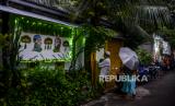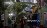 Warga masuk ke rumahnya yang dihias bertemakan Ramadhan di Kampung Martakura, Kebon Melati, Jakarta, Kamis (15/4). Kampung Martakura dihias secara swadaya oleh warga dengan ornamen bertemakan Ramadhan untuk menyambut bulan suci Ramadhan dan memberikan kegiatan positif kepada warga di masa pandemi Covid-19. Republika/Putra M. Akbar (FOTO : Republika/Putra M. Akbar)