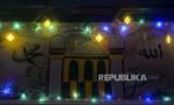 Mural dan hiasan ketupat yang terpasang di salah satu rumah warga di Kampung Martakura, Kebon Melati, Jakarta, Kamis (15/4). Kampung Martakura dihias secara swadaya oleh warga dengan ornamen bertemakan Ramadhan untuk menyambut bulan suci Ramadhan dan memberikan kegiatan positif kepada warga di masa pandemi Covid-19. (FOTO : Republika/Putra M. Akbar)