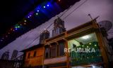 Anak-anak berada di rumah yang dihias bertemakan Ramadhan di Kampung Martakura, Kebon Melati, Jakarta, Kamis (15/4). Kampung Martakura dihias secara swadaya oleh warga dengan ornamen bertemakan Ramadhan untuk menyambut bulan suci Ramadhan dan memberikan kegiatan positif kepada warga di masa pandemi Covid-19. (FOTO : Republika/Putra M. Akbar)