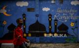 REPUBLIKA.CO.ID, JAKARTA -- Pengendara motor melintas di dekat mural bertemakan Ramadhan di Kampung Martakura, Kebon Melati, Jakarta, Kamis (15/4).