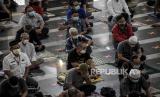 Umat muslim mendengarkan ceramah Shalat Jumat di Masjid Pusdai, Kota Bandung, Jumat (16/4).  (FOTO : REPUBLIKA/ABDAN SYAKURA)