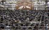 Umat muslim melaksanakan ibadah Shalat Jumat di Masjid Pusdai, Kota Bandung, Jumat (16/4). (FOTO : REPUBLIKA/ABDAN SYAKURA)