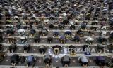 Umat muslim melaksanakan ibadah Shalat Jumat di Masjid Pusdai, Kota Bandung, Jumat (16/4).  (FOTO : REPUBLIKA/ABDAN SYAKURA)