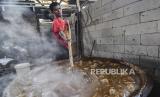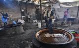 REPUBLIKA.CO.ID, BEKASI -- Sejumlah pekerja mengaduk dodol dalam kuali di rumah produksi Empat Saudara, Desa Sukajaya, Cibitung, Kabupaten Bekasi, Jawa Barat, Ahad (25/4). Produksi dodol dengan varian rasa seperti wijen,ketan hitam dan duren tersebut mengalami peningkatan 80 persen pada bulan Ramadhan dengan harga jual Rp40 ribu per kilogram.