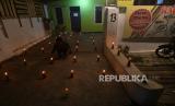 Warga menyalakan lampu minyak di halaman rumah tiga hari menjelang Lebaran..