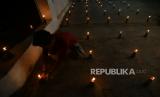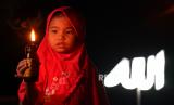 REPUBLIKA.CO.ID, GORONTALO -- Sejumlah bocah memegang lampu botol saat merayakan tradisi Tumbilotohe atau malam pasang lampu di Hutadaa, Kabupaten Gorontalo, Gorontalo, Ahad (9/5). Perayaan malam pasang lampu tersebut dilakukan tiga hari jelang Idul Fitri dan menyambut malam Lailatul Qadar dengan menyalakan lampu minyak di halaman rumah, masjid dan lapangan.