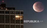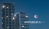 Suasana gedung bertingkat saat terjadi gerhana bulan di Jakarta, Rabu (26/5/2021). Kemenkeu menyampaikan bahwa defisit APBN hingga April 2021 mencapai Rp138,1 triliun dimana angka ini setara dengan 0,83 persen dari PDB dari target defisit sebesar 5,7 persen tahun ini. (FOTO : Antara/Muhammad Adimaja)