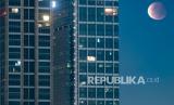 Suasana gedung bertingkat saat terjadi gerhana bulan di Jakarta, Rabu (26/5/2021).Kemenkeu menyampaikan bahwa defisit APBN hingga April 2021 mencapai Rp138,1 triliun dimana angka ini setara dengan 0,83 persen dari PDB dari target defisit sebesar 5,7 persen tahun ini. (FOTO : Antara/Muhammad Adimaja)