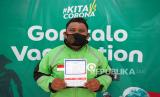 Seorang pengendara ojek daring menunjukkan kartu vaksinasi usai disuntik vaksin Sinovac di Bele Li Mbui, Kota Gorontalo, Gorontalo, Kamis (10/6/2021). Pemerintah Provinsi Gorontalo menggelar vaksinasi massal bagi pengemudi becak motor (bentor) dan ojek daring untuk mempercepat cakupan vaksinasi dalam memutus penyebaran COVID-19 di daerah itu. (FOTO : ANTARAFOTO/Adiwinata Solihin)