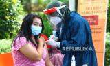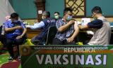 Sementara itu petugas medis menyuntikkan vaksin COVID-19 Astrazeneca saat vaksinasi massal di Taman Slamet, Malang, Jawa Timur, Kamis (10/6). Pelaksanaan vaksinasi massal kepada masyarakat umum tersebut sengaja diadakan di taman untuk mengurangi rasa takut terhadap jarum suntik bagi sebagian penerima vaksin sekaligus sebagai sarana sosialisasi keamanan vaksin.