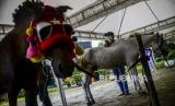 Sejumlah kusir delman membawa kudanya untuk dipasangi tapal kuda yang baru di Agro Edukasi Wisata Ragunan, Jakarta, Senin (14/6). Jakarta Animal Aid Network bersama Suku Dinas Ketahanan Pangan, Kelautan dan Pertanian Jakarta Selatan menyelenggarakan acara workshop perawatan dan pemasangan tapal kuda untuk mengedukasi kesejahteraan kuda pekerja kepada kusir. (FOTO : Republika/Putra M. Akbar)