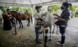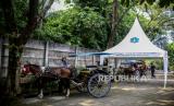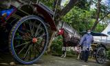 REPUBLIKA.CO.ID,JAKARTA -- Sejumlah kusir delman membawa kudanya untuk dipasangi tapal kuda yang baru di Agro Edukasi Wisata Ragunan, Jakarta, Senin (14/6).