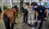 Plt Wali Kota Jakarta Selatan Isnawa Adji (tengah) saat menghadiri acara workshop perawatan dan pemasangan tapal kuda di Agro Edukasi Wisata Ragunan, Jakarta, Senin (14/6). Jakarta Animal Aid Network bersama Suku Dinas Ketahanan Pangan, Kelautan dan Pertanian Jakarta Selatan menyelenggarakan acara tersebut untuk mengedukasi kesejahteraan kuda pekerja kepada kusir. (FOTO : Republika/Putra M. Akbar)