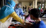 REPUBLIKA.CO.ID,JAKARTA -- Petugas medis menyuntikkan vaksin Covid-19 kepada warga rumah susun (rusun) Jatinegara Barat di Jakarta, Jumat (18/6).