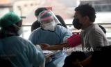 REPUBLIKA.CO.ID, JAKARTA -- Warga berjalan meninggalkan lokasi vaksin COVID-19 di Stasiun MRT Blok A, Jakarta, Kamis (22/7). MRT Jakarta bekerja sama dengan BPJS Ketenagakerjaan melaksakan vaksinasi gratis dosis pertama yang berlangsung pada 22-24 Juli 2021 dengan target 1.800 peserta.