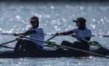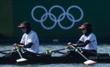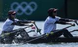 REPUBLIKA.CO.ID,TOKYO -- Pedayung putri Indonesia Mutiara Rahma Putri dan Melani Putri berlatih di Sea Forest Waterway, Tokyo, Jepang, Kamis (22/7/2021).