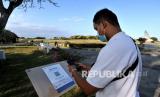 Pengunjung memindai QR Code dengan aplikasi PeduliLindungi saat mengunjungi destinasi Pulau Peninsula di The Nusa Dua, Badung, Bali, Jumat (30/7/2021). Program (FOTO : Antara/Fikri Yusuf)