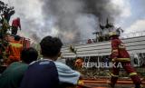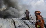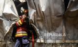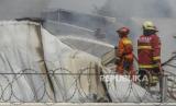 REPUBLIKA.CO.ID, DEPOK -- Petugas Pemadam Kebakaran berusaha memadamkan api yang melalap gudang alat pesta di kawasan Cinangka, Depok, Jawa Barat, Senin (2/8). Sebanyak 15 pemadam kebakaran memadamkan api yang melalap gudang berisi alat pesta event organizer yang hingga saat ini penyebab kebakaran masih berlangsung dan kerugian belum diketahui.