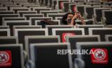 Calon penumpang kereta api menunggu jadwal keberangkatan kereta api saat masa Pemberlakuan Pembatasan Kegiatan Masyarakat (PPKM) Level 4 di Stasiun Pasar Senen, Jakarta, Selasa (3/8/2021). Meski menurut Gubernur Anies Baswedan kasus aktif harian COVID-19 Jakarta menurun hampir 100.000 orang dalam dua pekan terakhir, pemerintah masih memperpanjang PPKM Level 4 hingga 9 Agustus 2021 di Ibukota. (FOTO : Antara/Aditya Pradana Putra)