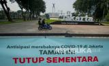 Pengendara sepeda motor melintas di Lapangan Banteng yang tutup karena Pemberlakuan Pembatasan Kegiatan Masyarakat (PPKM) Level 4 di Jakarta, Selasa (3/8/2021). Meski menurut Gubernur Anies Baswedan kasus aktif harian COVID-19 Jakarta menurun hampir 100.000 orang dalam dua pekan terakhir, pemerintah masih memperpanjang PPKM Level 4 hingga 9 Agustus 2021 di Ibukota. (FOTO : Antara/Aditya Pradana Putra)