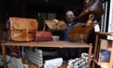 Pekerja menata tas berbahan dasar kantong semen di UMKM HeyStartic di Surabaya, Jawa Timur, Jumat (27/8/2021). UMKM binaan BRI tersebut memproduksi berbagai aksesori berbahan dasar kantong semen bekas seperti tas, dompet, sepatu, dan berbagai aksesori lainnya yang dijual berkisar Rp50 ribu-Rp350 ribu per buah. (FOTO : ANTARA/Zabur Karuru)