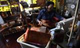 REPUBLIKA.CO.ID, SURABAYA -- Pekerja menyelesaikan jahitan tas dari kantong semen bekas yang telah diberikan motif di UMKM HeyStartic di Surabaya, Jawa Timur, Jumat (27/8/2021).