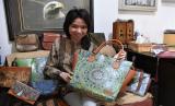 Pendiiri sekaligus pemilik UMKM Hey Startic Vania Santoso berpose dengan tas yang berbahan dasar kantong semen bekas di UMKM HeyStartic di Surabaya, Jawa Timur, Jumat (27/8/2021). UMKM binaan BRI tersebut memproduksi berbagai aksesori berbahan dasar kantong semen bekas seperti tas, dompet, sepatu, dan berbagai aksesori lainnya yang dijual berkisar Rp50 ribu-Rp350 ribu per buah. (FOTO : ANTARA/Zabur Karuru)