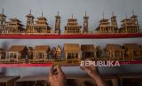 Perajin merapikan kerajinan miniatur rumah Baduy dari limbah kayu di Kampung Sentral, Lebak, Banten, Ahad (5/9/2021). Produksi kerajinan berbagai macam bentuk seperti miniatur kereta, jam dinding, dan miniatur rumah tersebut dibuat dengan memanfaatkan limbah kayu dan bambu yang dijualnya seharga Rp25 ribu hingga Rp150 ribu per unit. (FOTO : ANTARA/Muhammad Bagus Khoirunas/rwa.)