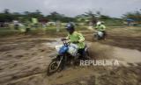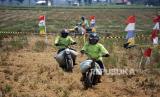 REPUBLIKA.CO.ID, BATANG -- Sejumlah warga mengikuti balap sepeda motor gabah di lahan sawah milik warga di Desa Tegalsari, Kandeman, Kabupaten Batang, Jawa Tengah, Minggu (12/9/2021). Lomba balap sepeda motor gabah yang diikuti oleh 30 warga yang berprofesi sebagai ojek gabah itu dalam rangka syukur atas hasil panen padi yang melimpah.