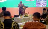 Plt Dirjen Pengendalian Daerah Aliran Sungai dan Rehabilitasi Hutan (PDASRH) KLHK Helmi Basalamah memberikan sambutan pada acara Ekspose hasil penilaian dan serah terima hasil penanaman dalam rangka rehabilitasi DAS dan pelaksanaan penanaman reboisasi pada lahan kompensasi oleh pemegang Izin Pinjam Pakai Kawasan Hutan IPPKH atau Pinjam Pakai Kawasan Hutan (PPKH) di Gedung Manggala Wanabakti, Jakarta, Selasa (12/10). Kegiatan tersebut sebagai upaya perbaikan lingkungan dan meminimalisir kerusakan ekosistem hutan. (FOTO : Prayogi/Republika.)
