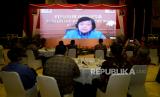 Menteri Lingkungan Hidup dan Kehutanan Siti Nurbaya memberikan sambutan pada acara Ekspose hasil penilaian dan serah terima hasil penanaman dalam rangka rehabilitasi DAS dan pelaksanaan penanaman reboisasi pada lahan kompensasi oleh pemegang Izin Pinjam Pakai Kawasan Hutan IPPKH atau Pinjam Pakai Kawasan Hutan (PPKH) di Gedung Manggala Wanabakti, Jakarta, Selasa (12/10). Kegiatan tersebut sebagai upaya perbaikan lingkungan dan meminimalisir kerusakan ekosistem hutan. (FOTO : Prayogi/Republika.)