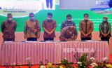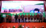 Plt Dirjen Pengendalian Daerah Aliran Sungai dan Rehabilitasi Hutan (PDASRH) KLHK Helmi Basalamah (lima Kiri), Direktur Konservasi Tanah dan Air Muhammad Zainal Arifin (enam Kiri) bersama perwakilan perusahaan berfoto pada acara Ekspose hasil penilaian dan serah terima hasil penanaman dalam rangka rehabilitasi DAS dan pelaksanaan penanaman reboisasi pada lahan kompensasi oleh pemegang Izin Pinjam Pakai Kawasan Hutan IPPKH atau Pinjam Pakai Kawasan Hutan (PPKH) di Gedung Manggala Wanabakti, Jakarta, Selasa (12/10). Kegiatan tersebut sebagai upaya perbaikan lingkungan dan meminimalisir kerusakan ekosistem hutan. (FOTO : Prayogi/Republika.)