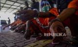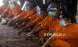 Sejumlah tersangka dihadirkan saat kegiatan pemusnahan narkotika di Jakarta, Selasa (19/10). BNN memusnahkan 465 kilogram sabu, 113 kilogram ganja dan 1 kilogram MDMB-4en-Pinaca hasil dari pengungkapan sepuluh kasus yang berbeda. Republika/Putra M. Akbar (FOTO : Republika/Putra M. Akbar)